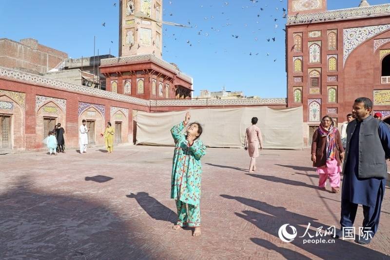 在拉合尔古城内的瓦齐尔汗清真寺,一名小女孩正在放风筝。人民网记者 赵益普摄